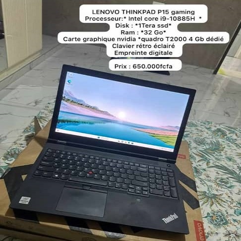 LENOVO THIANKPAD P15 gaming intel Core I9-10885H RAM 32 GO Disque Dure SSD 1 Tera Carte graphique nvidia quadro T2000 4 Gb dédié Clavier rétro éclairé empreinte digitale .