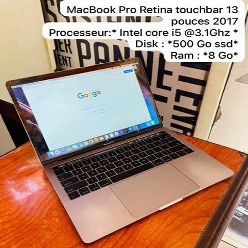 MacBook Pro Retina touchbar 13 pouces 2017 Intel Core I5 @3.1Ghz disk 500 Go Go SSD RAM 8 Go.